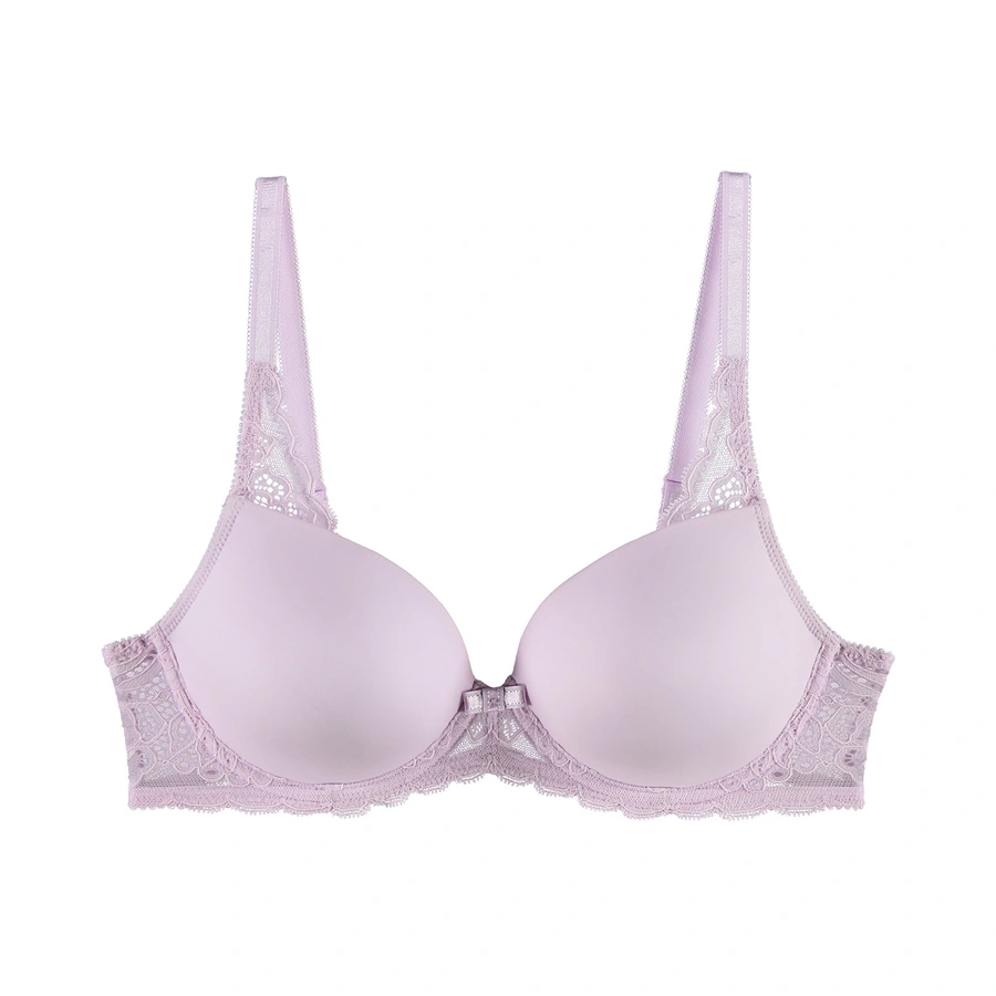 T-Shirt-BH mit schönem Spitzeneinsatz am Trägereck und an der Unterbrust. Glatte cups zeichnen sich auch unter enger Kleidung nicht ab.