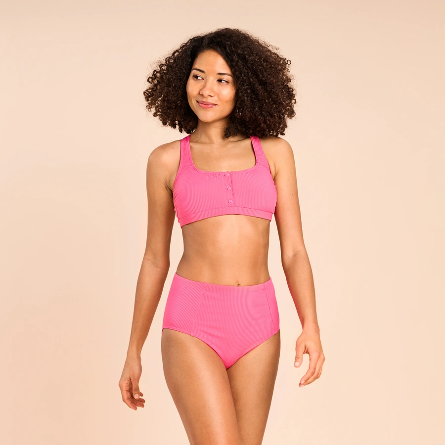 Notre série de maillots de bain «Ora» propose des pièces confortables pour toutes les étapes de la vie et est également adaptée à la grossesse et à l’allaitement. L’élégant slip taille haute dispose d’une coupe flatteuse et est composé d’une matière extérieure recyclée.