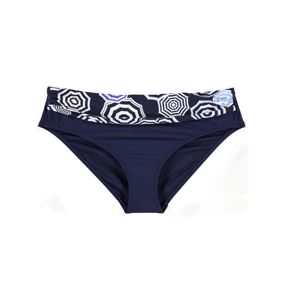 L'elegante blu mare risalta in fresca combinazione con il bianco nella serie “Cruise Time”, nella stampa con piccoli ombrelloni visti dall’alto, ispirata alla Costa Azzurra, la meta preferita dal jet set internazionale.