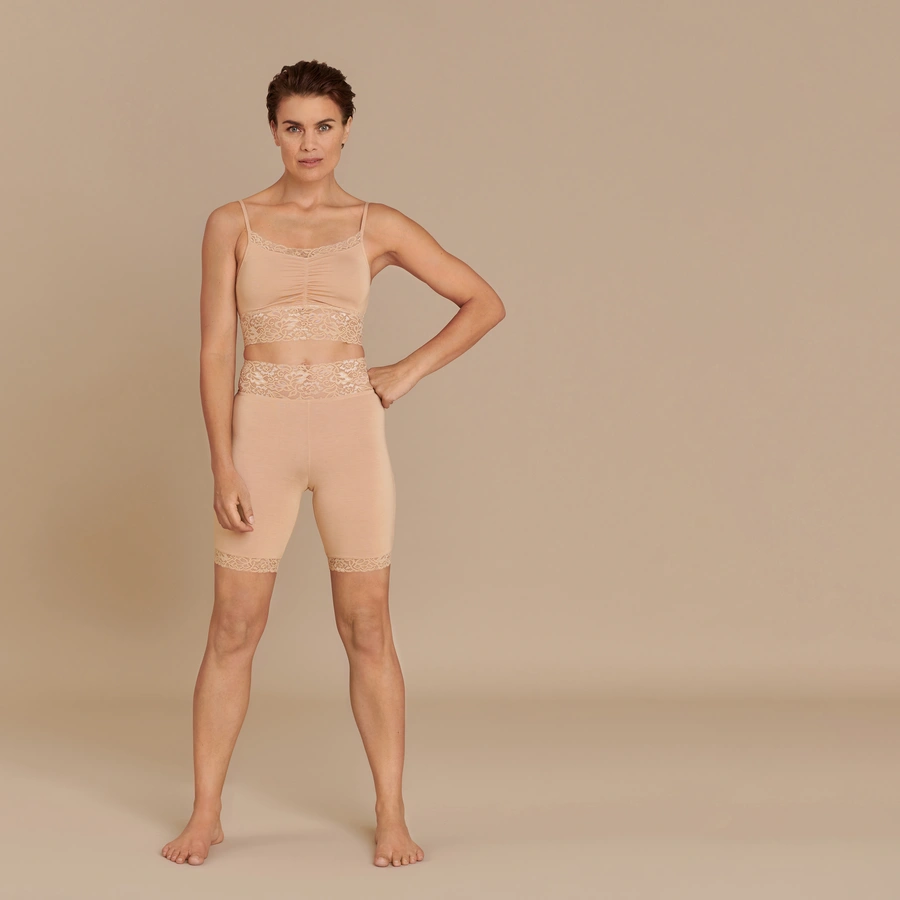 Il top COZY BEAUTY è un capo davvero versatile. Portato sotto ai vestiti o sfoggiato sotto un blazer, vi farà sentire sempre a vostro agio. A renderlo così confortevole è lo straordinario TENCEL™ Modal. Come previsto dal nostro programma B.AWARE, le fibre sono ricavate da legno di faggio di origine naturale mediante un processo rispettoso dell’ambiente e garantiscono il massimo comfort nonché una tonalità e una lucentezza perfette. Grazie alle coppe estraibili e alle spalline regolabili (un po’ più larghe a partire dalla taglia XL), il top si adatta a qualsiasi silhouette. Il pizzo applicato sullo scollo e sulla fascia sottoseno dona al top un tocco sensuale.
