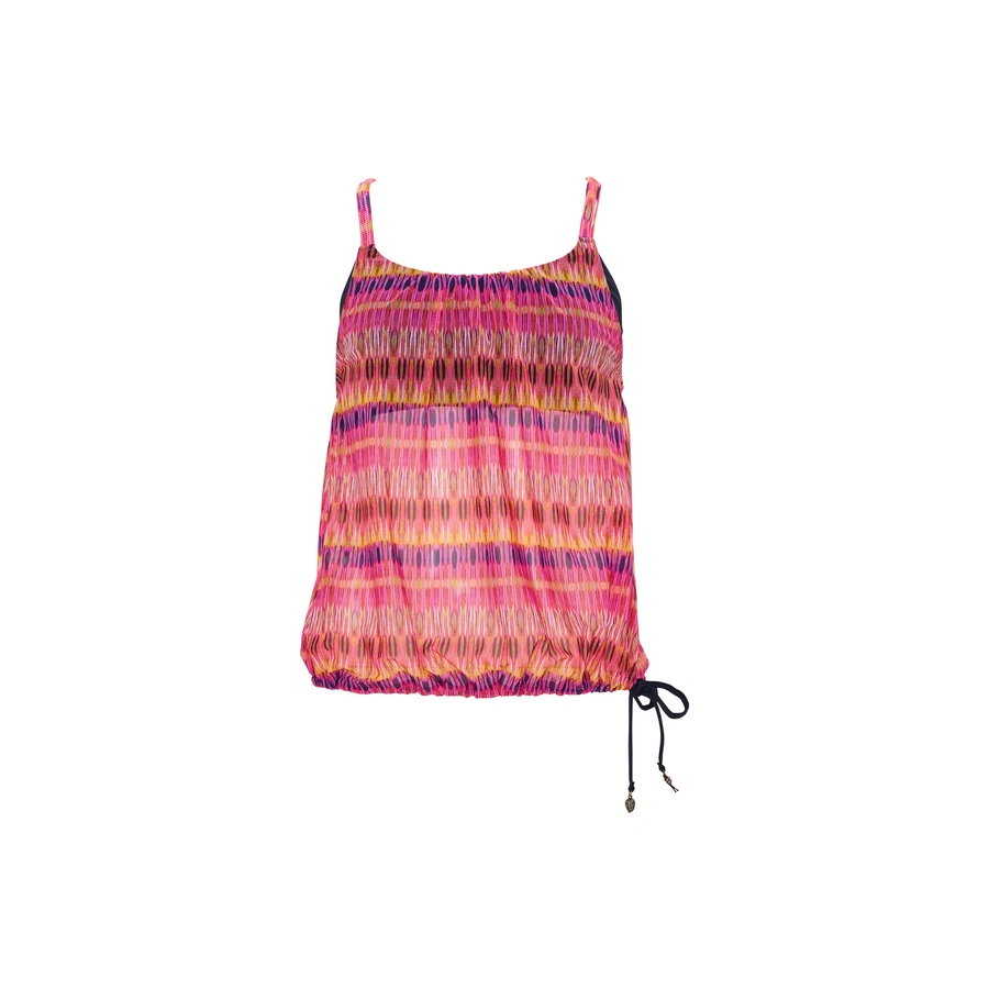 Meraviglioso nei colori più belli della stagione, il tankini big cup «Tyria» coniuga un’estiva stampa boho dalle tonalità vivaci e accessori decorativi. Questo modello in moderno stile t-shirt presenta un’allacciatura sull’orlo e una graziosa cintura decorativa. Le imbottiture estraibili garantiscono un comfort maggiore e il materiale riciclato con inserti in mesh risulta piacevole sulla pelle.