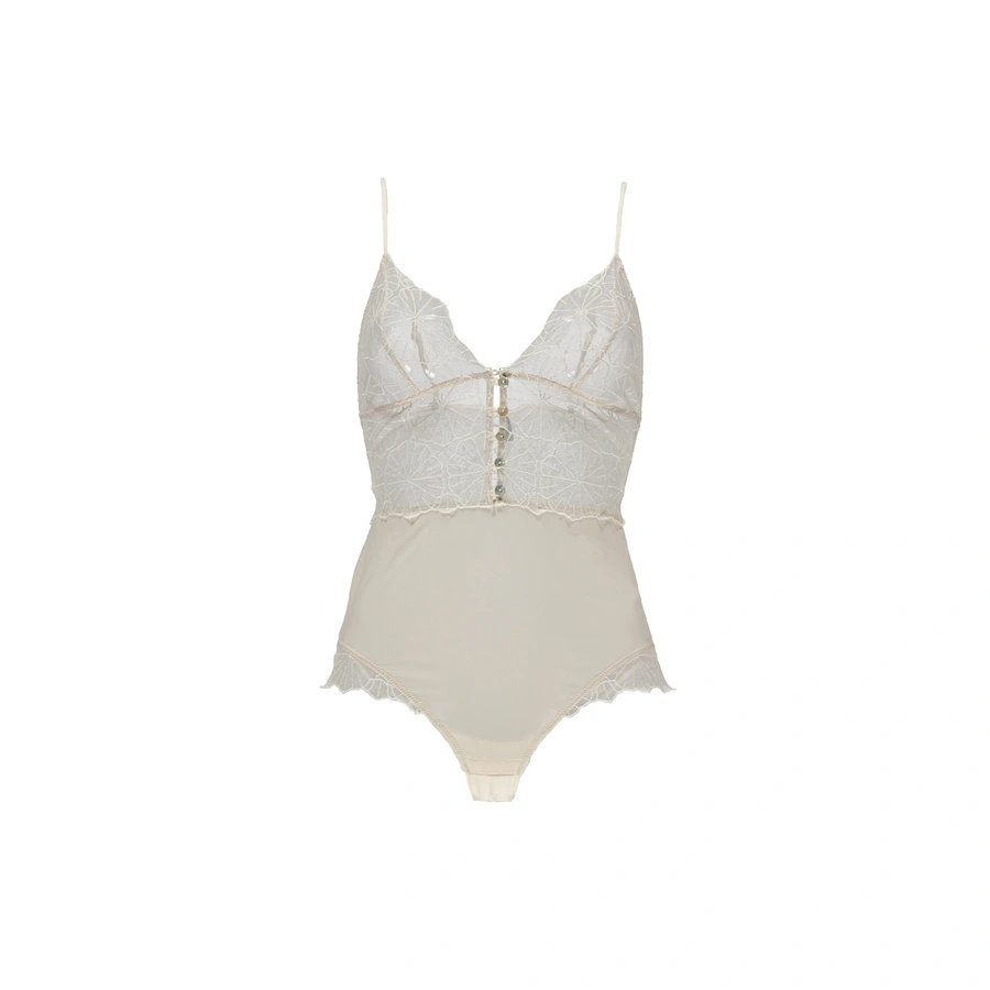 Questo body con spalline sottili combina un top in pizzo floreale, uno slip in microfibra e pizzo sui lati. La scollatura vertiginosa è ornata da una graziosa chiusura a bottoni.