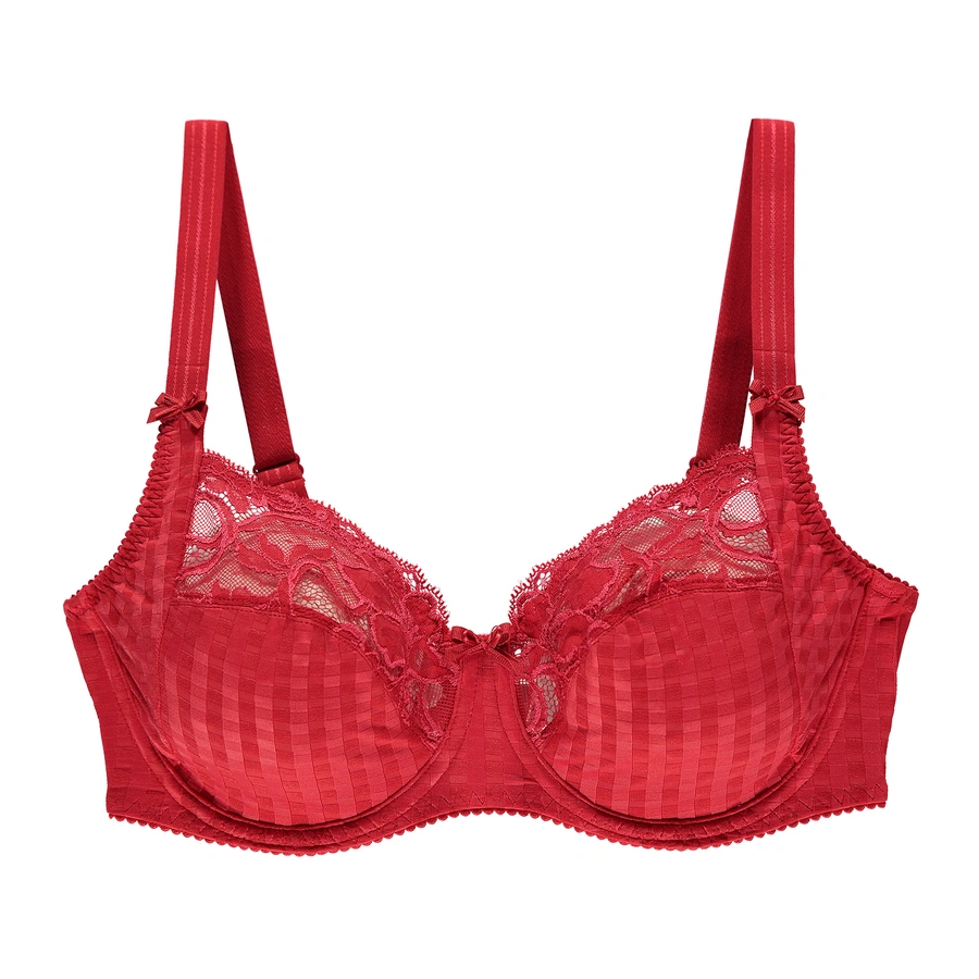 Reggiseno a coppa intera con ferretto e doppia fodera compatta. Questo taglio copre completamente il seno. Le coppe sono incredibilmente ariose e sollevano il seno in modo confortevole, creando una silhouette morbida e sinuosa.